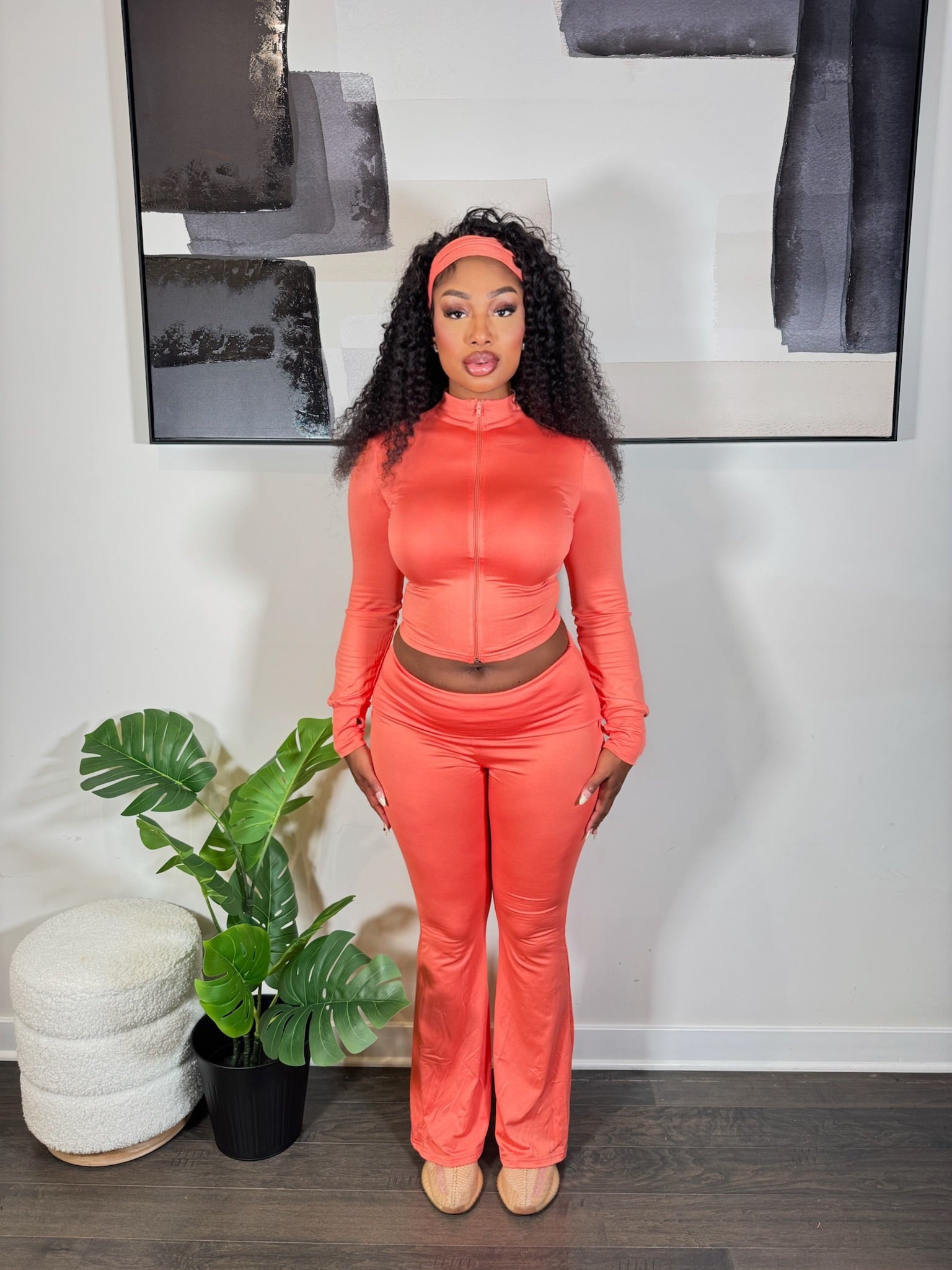 Pumpkin Spice 3- Piece Set. Comes with Headband. Model is 5’10 wearing a size Large. Also comes in black (Midnight Set).